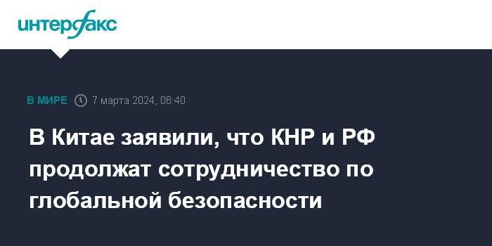 В Китае заявили, что КНР и РФ продолжат сотрудничество по глобальной безопасности