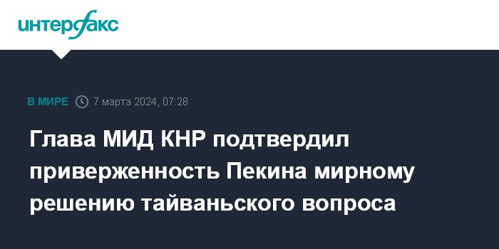 Глава МИД КНР подтвердил приверженность Пекина мирному решению тайваньского вопроса