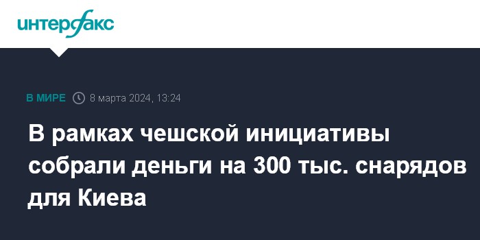 Москва. 8 марта. INTERFAX.RU - Премьер Чехии Петр Фиала заявил, что в рамках чешской инициативы по помощи Киеву ее страны-участницы смогли найти деньги для приобретения первой партии из 300 тыс. артиллерийских снарядов.