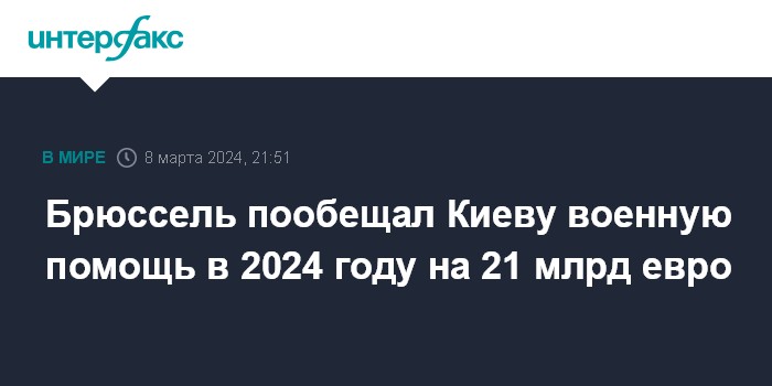 Брюссель пообещал Киеву военную помощь в 2024 году на 21 млрд евро