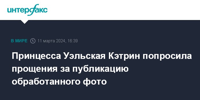 Москва. 11 марта. INTERFAX.RU - Восстанавливающая после хирургического вмешательства принцесса Уэльская Кэтрин Миддлтон попросила прощения после публикации существенно обработанной фотографии, на которой она позирует с детьми, сообщает в понедельник Sky News.