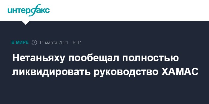 Москва. 11 марта. INTERFAX.RU - Премьер Израиля Биньямин Нетаньяху в понедельник заявил, что израильские военные в рамках операции против движения ХАМАС покончат со всеми его руководителями.