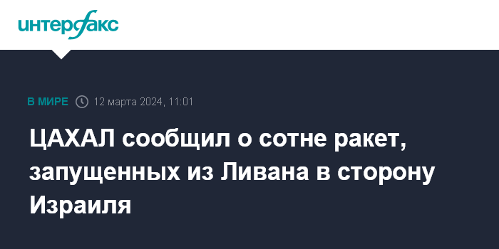 Москва. 12 марта. INTERFAX.RU - Из Ливана в направлении северных территорий Израиля было запущено две волны ракет общей численностью около сотни, сообщила Армия обороны Израиля, пишет The Times of Israel.