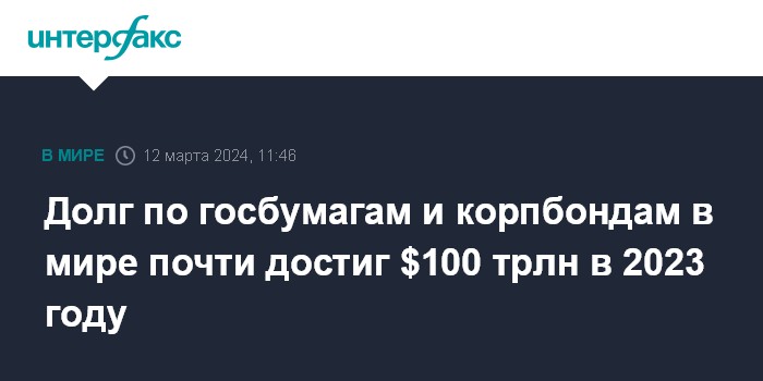 Долг по госбумагам и корпбондам в мире почти достиг $100 трлн в 2023 году
