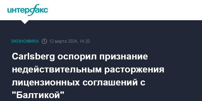 В декабре 2023 года суд первой инстанции удовлетворил иск "Балтики" к Carlsberg и признал недействительными односторонние отказы последней от лицензионных соглашений на производство и продажу продукции указанных брендов.