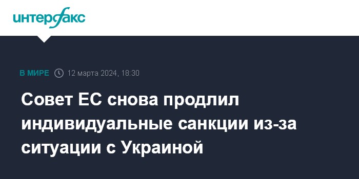 Эти индивидуальные санкции будут действовать до 15 сентября 2024 года, сообщается в коммюнике совета, опубликованном в Брюсселе.