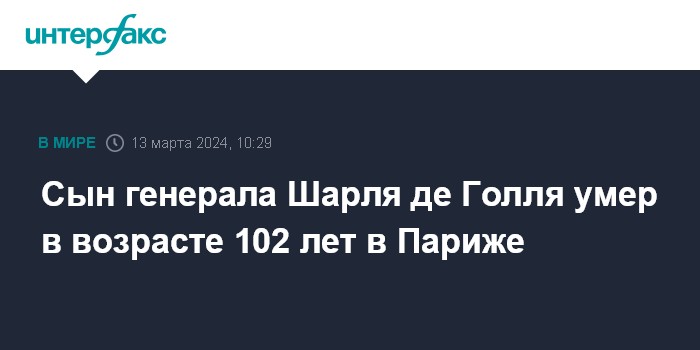 Сын генерала Шарля де Голля умер в возрасте 102 лет в Париже
