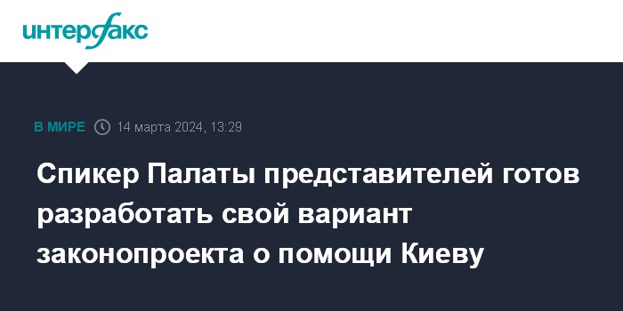 Москва. 14 марта. INTERFAX.RU - Спикер Палаты представителей Конгресса США Майк Джонсон заявил республиканским коллегам из Сената, что будет готов разработать собственный вариант законопроекта о помощи Украине, сообщает в четверг издание The Hill.