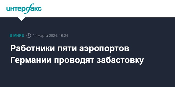 Москва. 14 марта. INTERFAX.RU - Сотрудники отделов безопасности пяти немецких аэропортов проводят забастовку в четверг, требуя улучшить условия труда.