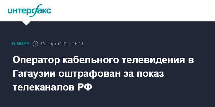 Москва. 15 марта. INTERFAX.RU - Оператор кабельного телевидения в Гагаузской автономии Молдавии оштрафован за то, что ретранслировал российские телеканалы.