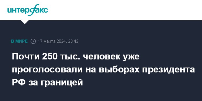 Почти 250 тыс. человек уже проголосовали на выборах президента РФ за границей