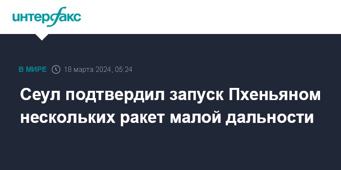 Москва. 18 марта. INTERFAX.RU - Северная Корея выпустила в понедельник несколько баллистических ракет малой дальности в направлении Японского моря, сообщает агентство "Ренхап" со ссылкой на южнокорейских военных.