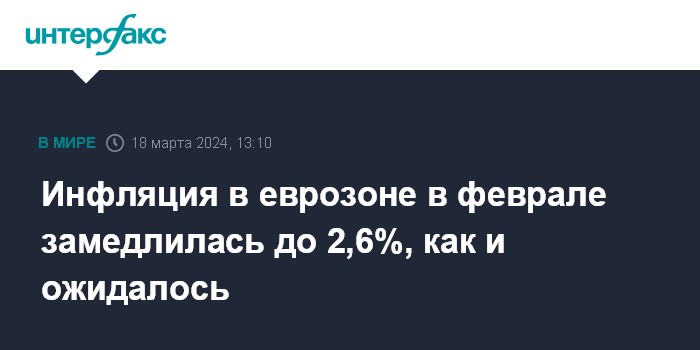 Инфляция в еврозоне в феврале замедлилась до 2,6%, как и ожидалось