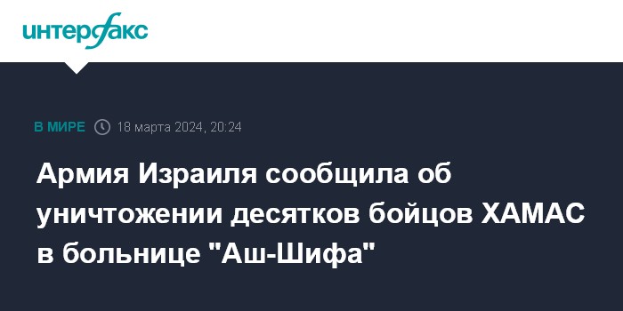 Армия Израиля сообщила об уничтожении десятков бойцов ХАМАС в больнице "Аш-Шифа"