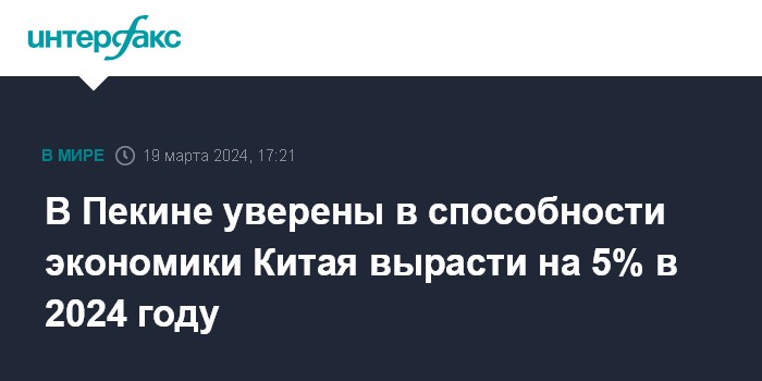В Пекине уверены в способности экономики Китая вырасти на 5% в 2024 году