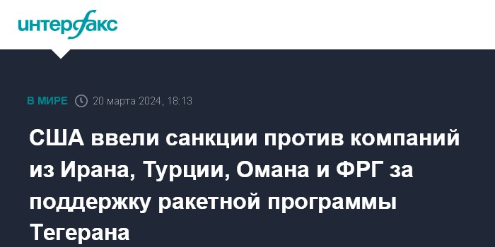 США ввели санкции против компаний из Ирана, Турции, Омана и ФРГ за поддержку ракетной программы Тегерана
