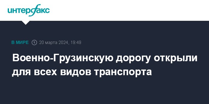 "В связи с расчисткой дорожного полотна на территории Грузии, возможностью обеспечения безопасного проезда автотранспортных средств, а также с учетом рекомендаций пограничной полиции Грузии разрешено движение всех видов автотранспортных средств на участке "Владикавказ - н.п. Ларс" в обоих направлениях с 19.00 по Москве 20 марта", - говорится в сообщении.