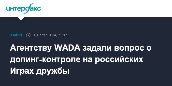 Агентству WADA задали вопрос о допинг-контроле на российских Играх дружбы