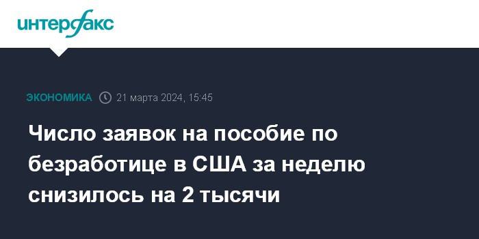 Москва. 21 марта. INTERFAX.RU - Количество американцев, впервые обратившихся за пособием по безработице, на прошлой неделе сократилось на 2 тысячи, до 210 тысяч, сообщило Минтруда США.