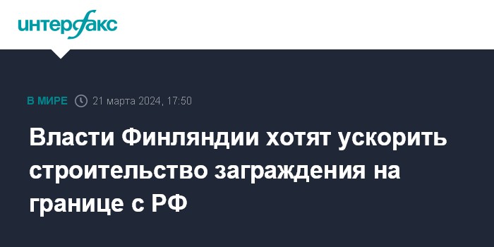 Москва. 21 марта. INTERFAX.RU - Правительство Финляндии планирует выделить в 2024 году дополнительно 74 млн евро, чтобы ускорить возведение заграждения на границе с Россией, сообщает в четверг портал Yle.