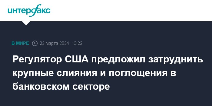 Регулятор США предложил затруднить крупные слияния и поглощения в банковском секторе
