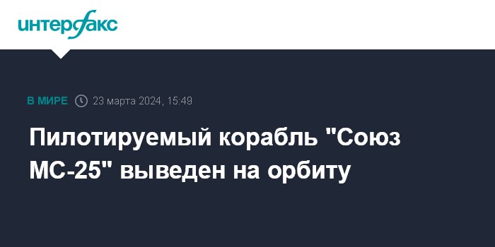 Пилотируемый корабль "Союз МС-25" выведен на орбиту