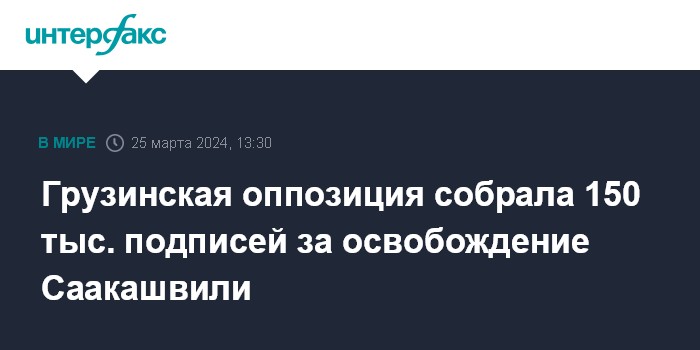 Москва. 25 марта. INTERFAX.RU - "Единое национальное движение", самая крупная оппозиционная партия в Грузии, представила 150 тыс. подписей граждан под требованием освободить из заключения бывшего президента Михаила Саакашвили.