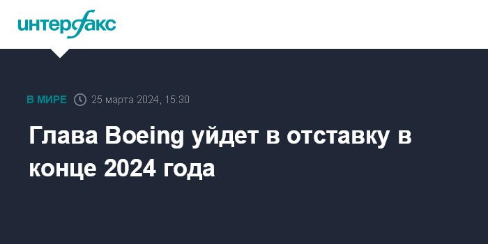 Москва. 25 марта. INTERFAX.RU - Главный исполнительный директор Boeing Co. Дэвид Кэлхун покинет свой пост в конце 2024 года, говорится в сообщении компании.