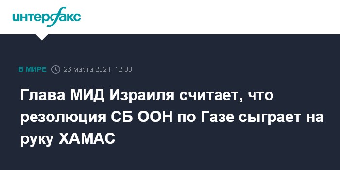 По его словам, решение США воздержаться от голосования по резолюции стало "моральной и этической ошибкой". Кац считает, что резолюция дает ХАМАС понять, что им "не нужно торопиться" с заключением сделки. Он связал принятие резолюции с отказом ХАМАС от израильских условий по режиму прекращения огня и обмену заложниками.