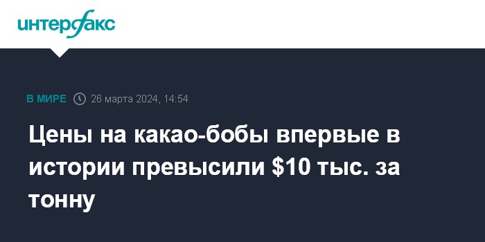 Цены на какао-бобы впервые в истории превысили $10 тыс. за тонну