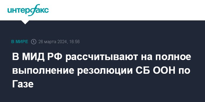 В МИД РФ рассчитывают на полное выполнение резолюции СБ ООН по Газе