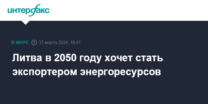 Москва. 27 марта. INTERFAX.RU - Литва в 2050 году планирует производить и потреблять 74 ТВт.ч электроэнергии, а также стать страной-экспортером энергоресурсов, в том числе водорода. Эти планы содержатся в обновленной национальной стратегии энергетической независимости Литвы, подготовленной Минэнерго страны, сообщает BNS.