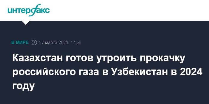 Казахстан готов утроить прокачку российского газа в Узбекистан в 2024 году