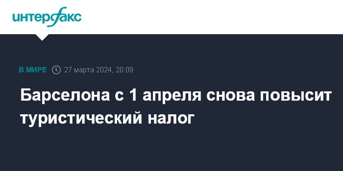 Москва. 27 марта. INTERFAX.RU - Барселона с 1 апреля повышает туристический налог, теперь за недельное пребывание в пятизвездочном отеле туристы должны будут заплатить почти 44 евро на человека помимо стоимости размещения, сообщают испанские СМИ.