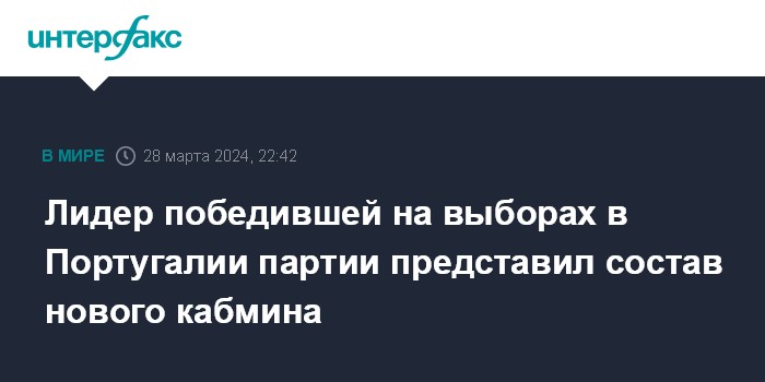 Москва. 28 марта. INTERFAX.RU - Лидер португальской партии "Демократический альянс" Луиш Монтенегру, которому президент страны Марселу Ребелу ди Соуза поручил сформировать правительство, представил в четверг состав кабинета.