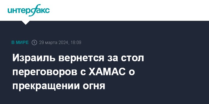 Израиль вернется за стол переговоров с ХАМАС о прекращении огня