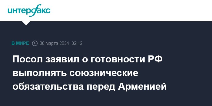 Посол заявил о готовности РФ выполнять союзнические обязательства перед Арменией