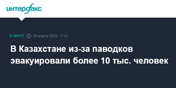 Москва. 30 марта. INTERFAX.RU - Количество эвакуированных с затопленных территорий в регионах Казахстана к вечеру субботы увеличилось до 10,5 тыс. человек, сообщила пресс-служба МЧС.