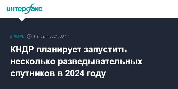 Москва. 1 апреля. INTERFAX.RU - Северная Корея подтвердила намерение запустить несколько разведывательных спутников в текущем году.