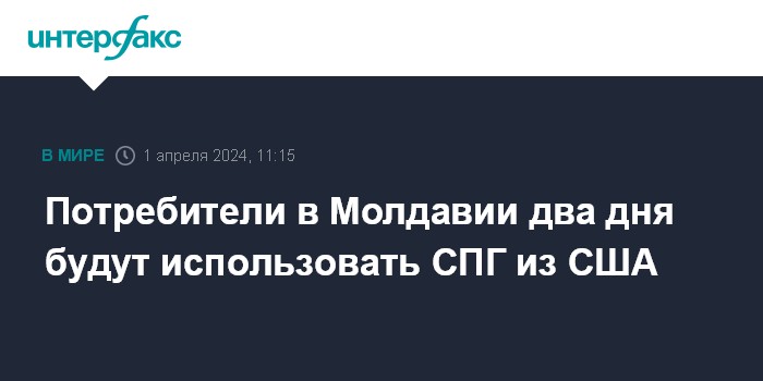 Москва. 1 апреля. INTERFAX.RU - Потребители в Молдавии в начале апреля смогут использовать сжиженный газ из США, сообщил в социальных сетях министр энергетики Виктор Парликов.