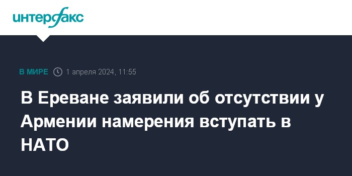 В Ереване заявили об отсутствии у Армении намерения вступать в НАТО