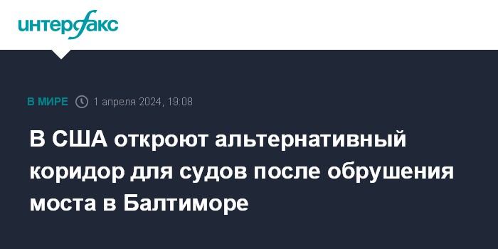В США откроют альтернативный коридор для судов после обрушения моста в Балтиморе