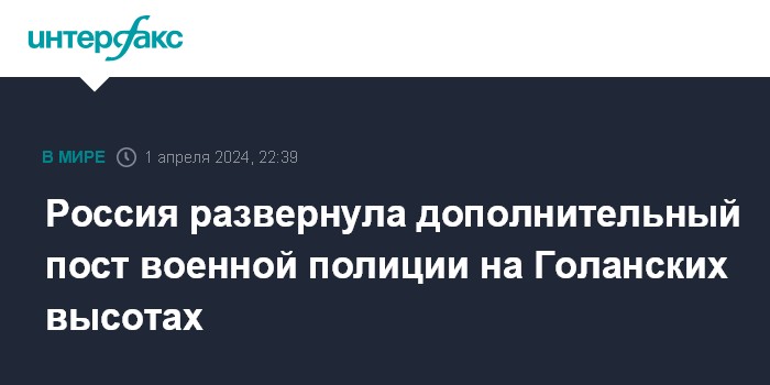 Москва. 1 апреля. INTERFAX.RU - В районе Голанских высот развернут дополнительный пост российской военной полиции, сообщил замруководителя российского Центра по примирению враждующих сторон (ЦПВС) в САР генерал-майор Юрий Попов.
