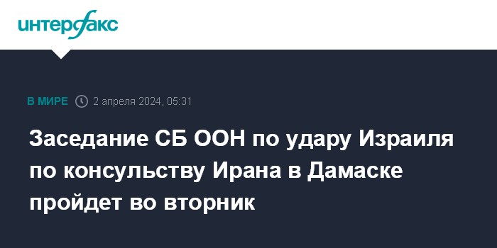 Заседание СБ ООН по удару Израиля по консульству Ирана в Дамаске пройдет во вторник