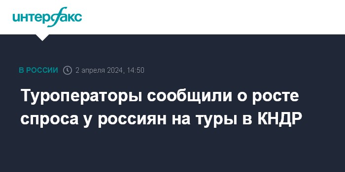 Москва. 2 апреля. INTERFAX.RU - У российских туристов растет спрос на организованные путешествия в Северную Корею среди российских туристов растет, в феврале-марте страну посетили уже три туристические группы, сообщил Российский союз туриндустрии (РСТ) со ссылкой на туроператоров.
