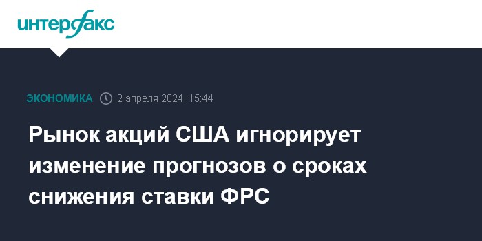 Рынок акций США игнорирует изменение прогнозов о сроках снижения ставки ФРС