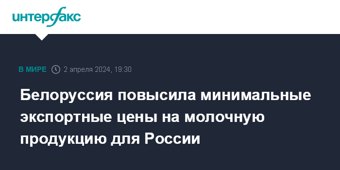 Ранее в текущем году Минсельхозпрод Белоруссии повышал минимальные цены на молочные продукты на экспорт на российский рынок 8 и 23 марта.