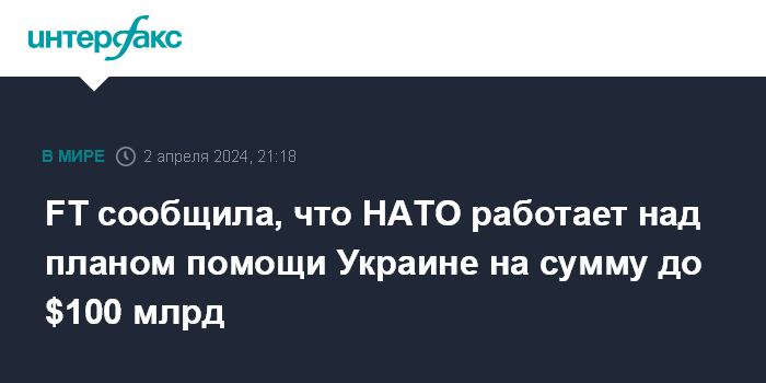 FT сообщила, что НАТО работает над планом помощи Украине на сумму до $100 млрд