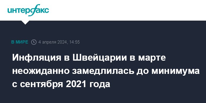 Инфляция в Швейцарии в марте неожиданно замедлилась до минимума с сентября 2021 года