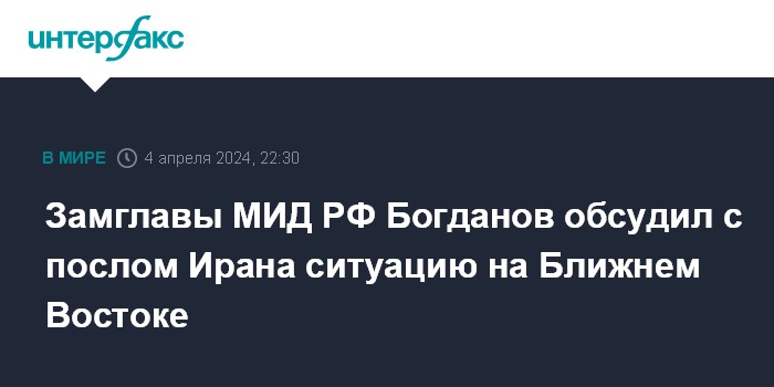 Замглавы МИД РФ Богданов обсудил с послом Ирана ситуацию на Ближнем Востоке